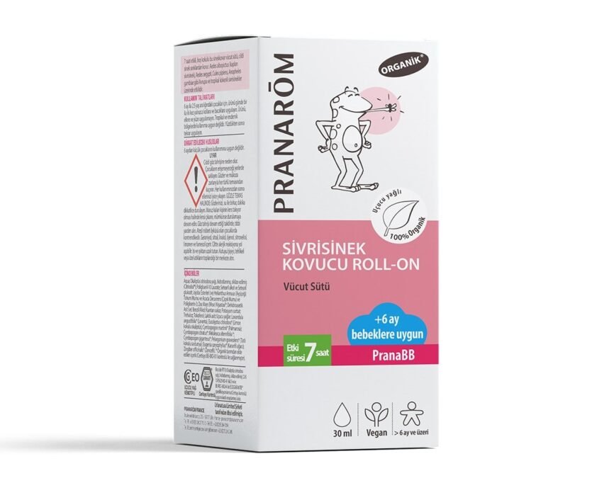 Son olarak Pranarom markasının organik içerikli sivrisinek kovucu roll-on’unu inceleyelim. Bu ürün, cilt koruması sağlamakla birlikte, sizi 7 saat boyunca haşere, sinek ve ısırıklardan korur. Doğal ve vegan içeriğiyle 6 ay ve üzeri bebekler için uygundur ve hem Avrupa hem de tropikal kökenli birçok sivrisinek türüne karşı etkilidir.