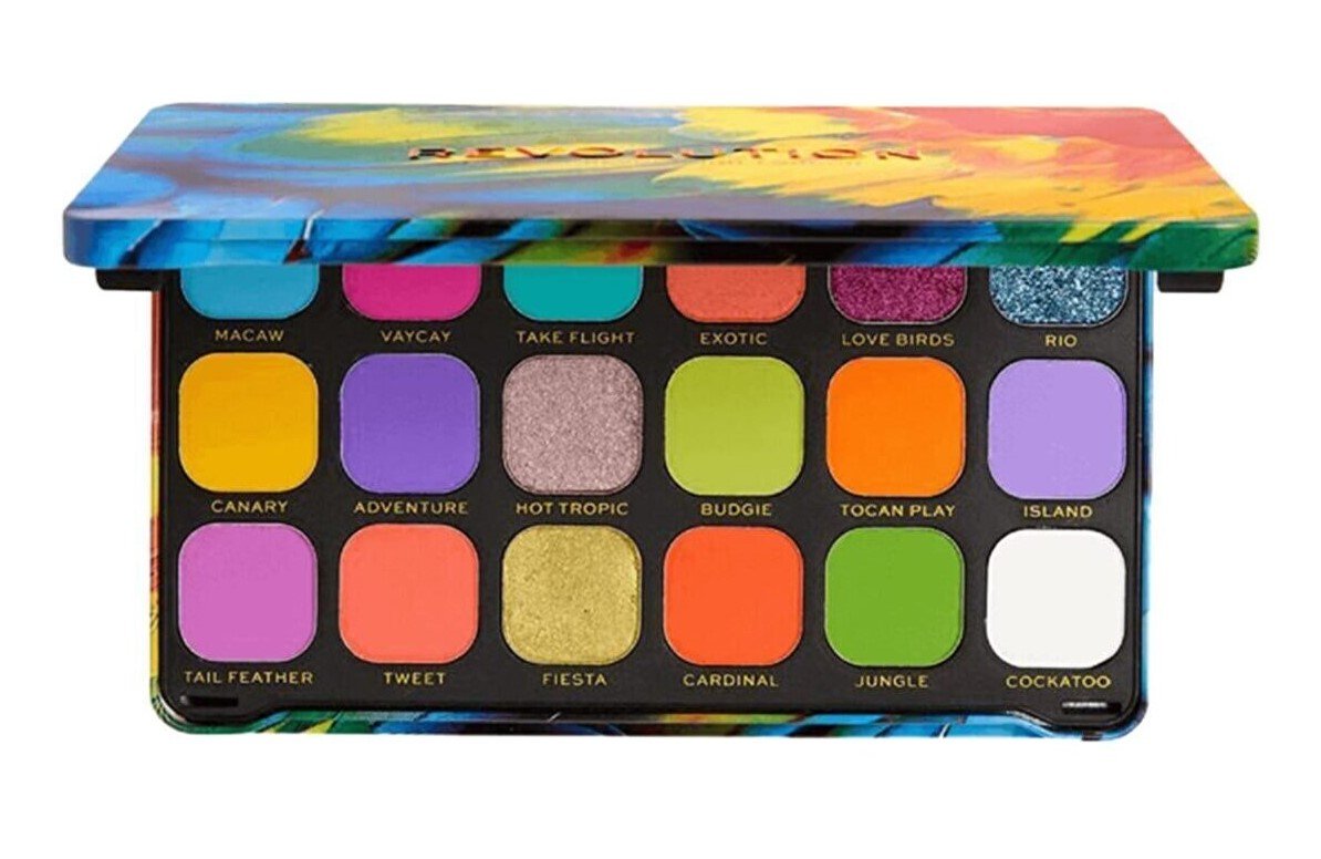 Tropikal ormanların canlı renklerinden ilham alan Revolution Forever Flawless Bird of Paradise paleti, içindeki çocuğu dışarı çıkarmak isteyenler için mükemmel bir seçenek! 18 ayrı renk, mat ve ışıltılı bitişleriyle, turuncudan pembeye, mordan maviye kadar çeşitlilik sunuyor.