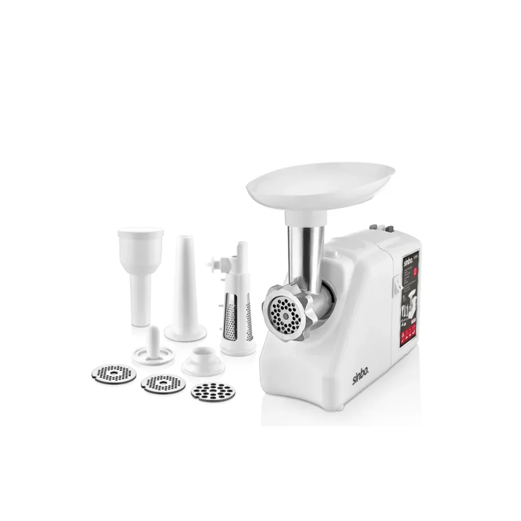 Sinbo SHB-3108 ayrıca sosis, sucuk ve içli köfte gibi özel aparatlarla birlikte gelir; bu sayede çeşitli lezzetleri zahmetsizce hazırlayabilirsiniz. Yiyecek tepsisi, kıyılan malzemeleri düzenli tutmanıza yardımcı olurken, itici plastik malzeme kullanımı da kolaylaştırmaktadır.