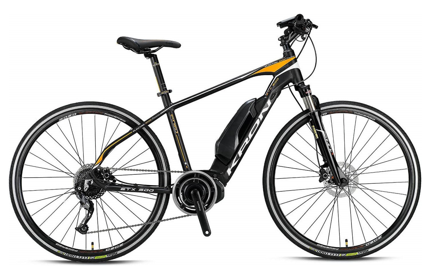 Kron ETX 500, yüksek kaliteli kadro yapısı ve bileşenleri ile öne çıkan bir elektrikli bisiklet modelidir. Shimano Alivio arka vites ve Shimano Altus ön vites sistemleri, sorunsuz vites geçişlerini sağlar. Shimano Steps Mid Drive motoru, yüksek tork gücü ile oldukça güçlüdür. 9 vitesli yapısı, alüminyum kadrosu ile konfor ve dayanıklılığı bir arada sunar. Kolay taşınabilen hafif kadro, önceki modeldeki gibi konforu devam ettirir. Bu bisikletin hidrolik disk frenleri, yüksek bir fren performansı sunar. LCD dijital ekranı, tüm özellikleri kontrol etmenize imkan tanır ve sürüş verilerinizi gösterir. Hafif ve kaliteli çift kat alüminyum jantları, sürüş sırasında konforlu bir deneyim sağlar. Amortisörlü ön maşası, bozuk yollardaki titreşimleri minimize eder ve kilitlenebilir olması, performansınızı ayarlamanıza yardımcı olur. Kron ETX 500, kadın ve erkek kullanıcılar için uygun kadro geometrisine sahip versiyonlarıyla dikkat ediyor.