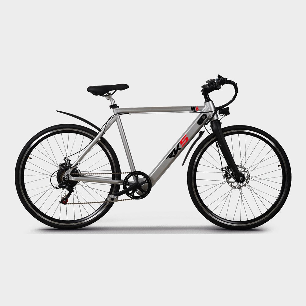 RKS W6, şehir bisikleti görünümüne sahip uygun fiyatlı kaliteli bir elektrikli bisiklet. Arka tekerlek motoru, 250W gücü ile pedal desteği sağlar. 36W 7.8AH bataryası ile 30 km menzil sunan bu batarya, 4 ila 6 saat arasında tamamen dolmaktadır. 6 vitesli Shimano komponentleri sağlam ve stabil çalışmaktadır. Üzerinde bulunan LCD ekran, tüm bisiklet kontrollerini sağlamanın yanı sıra sürüş verilerini gösteren bir yol bilgisayarı işlevi görür. Alüminyum kadrosu ve magnezyum maşası ile sağlam ve konforlu bir sürüş sunar. Çift katlı alüminyum jantları ve kadro geometrisi ile dik oturuş pozisyonunu rahatça sağlar. Konforlu bir seleye sahip olan RKS W6, standart olarak çamurluk ve ön-arka ışık gibi aksesuarlarla birlikte gelir. Mekanik disk fren sistemi sayesinde sürüşleriniz daha güvenli hale gelir. 25 km/s hıza ulaşabilen RKS W6, şehir içi ulaşımda her ihtiyacınıza yanıt verebilecek şık bir elektrikli bisiklet modelidir.