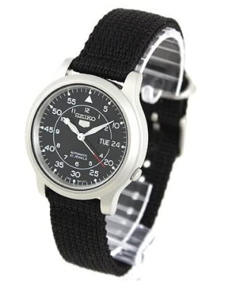 37 mm’lik zarif bir çelik kasaya sahip SEIKO SNK809K2’nin kasa rengi metalik gridir. Tekstil kayışı, bu saati günlük kıyafetlerle uyumlu hale getirir.