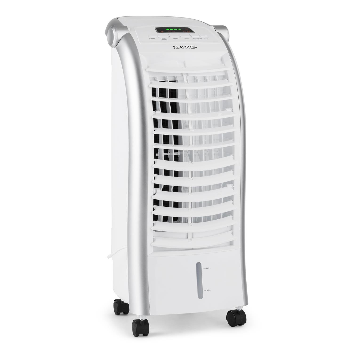 Berlin’de tasarlanan bu marka, iç mekan havalandırma teknolojisi ile uyumlu olarak çalışmaktadır. Klarstein Max Fresh, ayarlanabilir üç farklı fan kombinasyonu ile soğuk bir ortam yaratır. Ürünün iç mekandaki hava döngüsünü sürekli olarak sağlaması, zamana dayalı bir tasarım özelliği sunmaktadır. Gece istediğiniz saatte çalışmayı durdurabileceğiniz bu özellik sayesinde elektrik tasarrufu yapabilirsiniz. Buz torbası özelliğiyle sürekli soğuk hava üfleyen bu marka, uzaktan kumanda ile kolayca kontrole imkan tanır. Portatif klimalara eş değer bu vantilatör, seçimleriniz arasında yer alabilir.