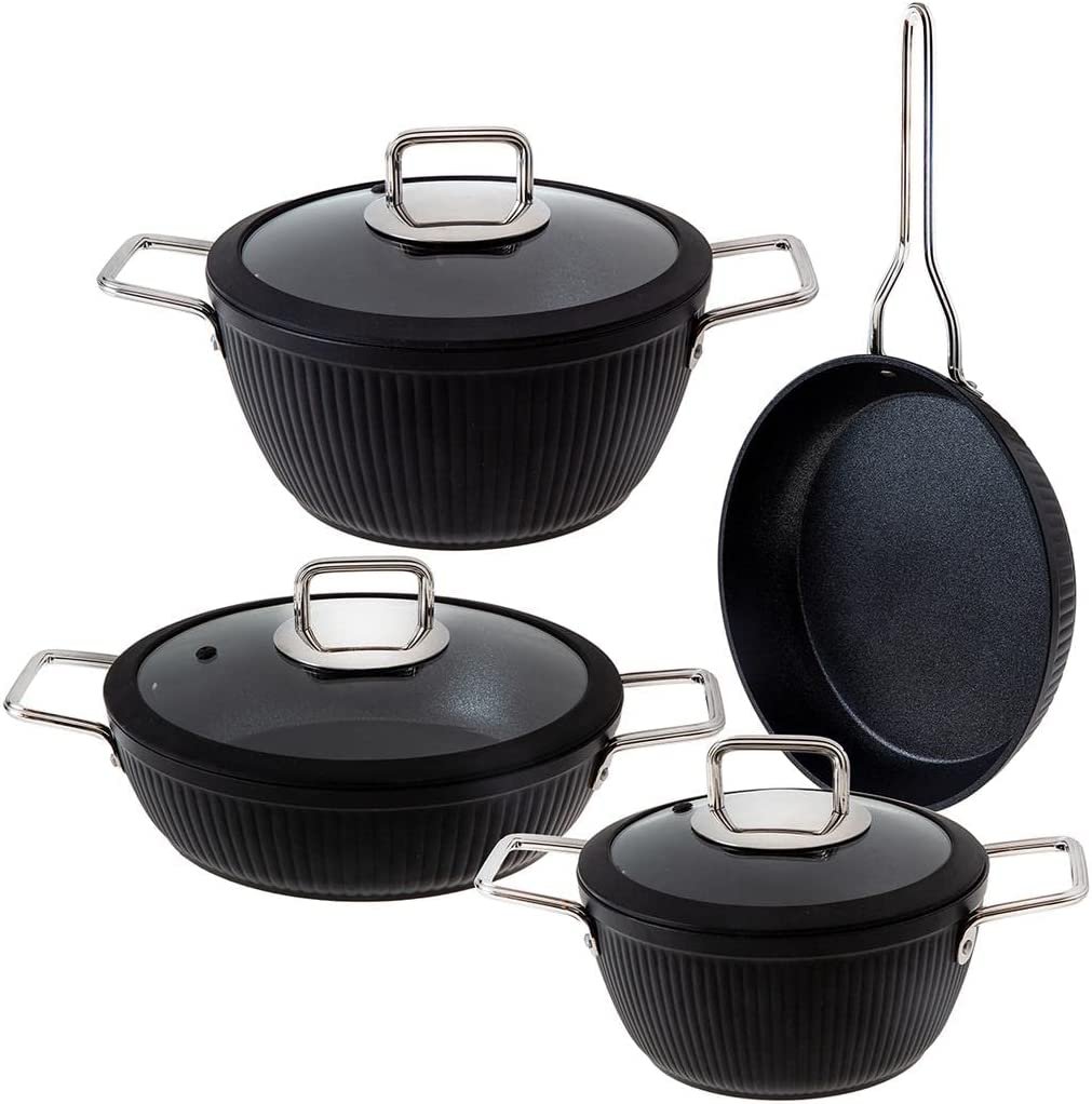 İçten destekli, su bazlı 3 katlı bir kaplamaya sahip olan Jumbo set, şık ve kullanışlı tasarımıyla dikkat çekiyor. Titanyum parçacıkları içeren yapısı, kaplamanın dış etkenlere karşı dayanıklı olmasını sağlıyor! Geri dönüştürülebilir malzemeden üretilen Jumbo granit tencere seti, ısıya, korozyona ve kimyasal faktörlere karşı dirençlidir. Ayrıca PFOA (perflorooktaniokasit) içermez.