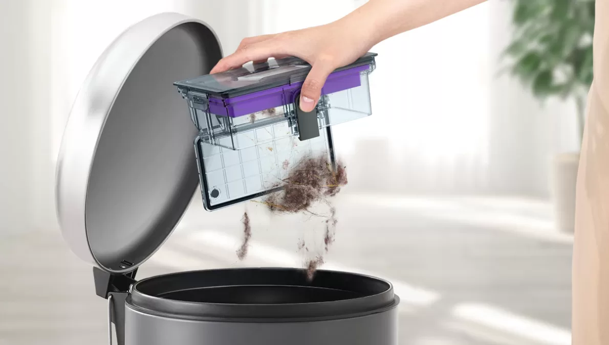 Yerleşik Wi-Fi kontrolü ve akıllı telefon uygulaması ile robotu dünyanın her yerinden kontrol edebilirsiniz. Tek bir dokunuşla hızlıca başlatabilir veya durdurabilir, çeşitli temizlik modlarını ayarlayabilir, emiş gücünü değiştirebilir ve temizleme hızını ve su akışını kontrol edebilirsiniz. Toplanan tozu bir düğmeye basarak kolayca ve hijyenik bir şekilde temizleyebilirsiniz. Şarj istasyonuna entegre edilen konteyner rahatlıkla temizlenebilir; içeriği kolayca boşaltıp yeniden takabilirsiniz.