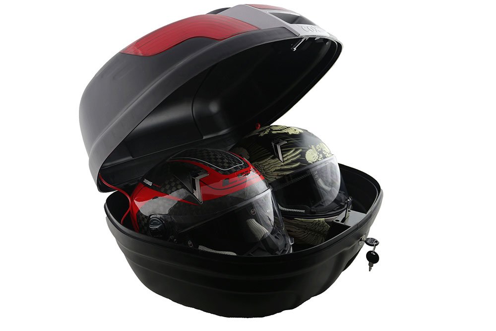 Bu çanta 47 litrelik kapasiteye sahip olup, geniş iç hacmi sayesinde iki kaskı rahatça taşıyabilir. Çizilmelere karşı özel malzemeden üretilen çanta aynı zamanda oldukça şık bir tasarıma sahiptir. Ürün, otomatik açılıp kapanma sistemine sahip olup, anahtar yardımıyla kolayca çıkarılıp taşınabilir. Kırmızı reflektör rengi tercih edilmiştir. Paket içerisinde çantaya ait bir alt tabaka da bulunmaktadır.